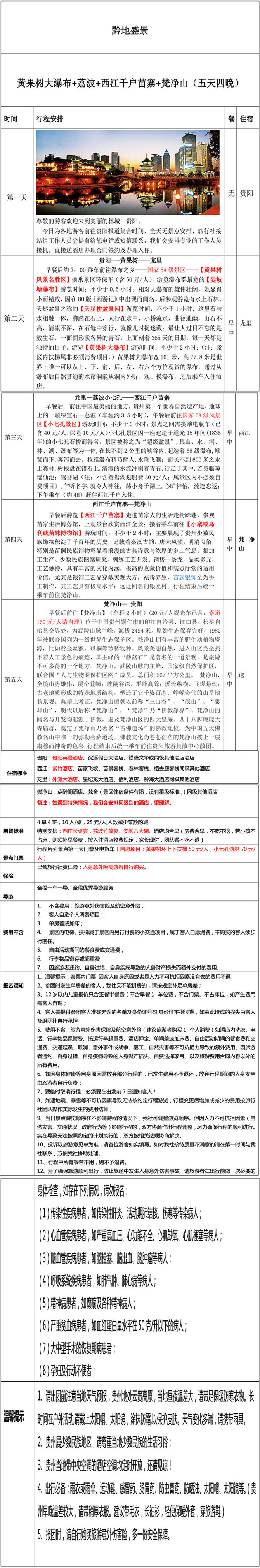 黄果树+荔波+镇远+西江千户+梵净山 五天四晚