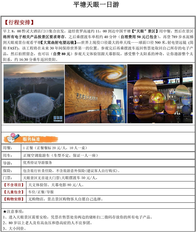 平塘天眼纯玩一日游
